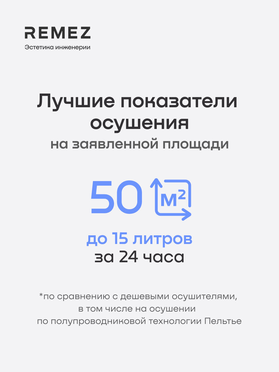 Осушитель воздуха REMEZ AeroDry RMD-312, Wi-Fi управление, 50 кв. м, 15л/сутки: сравнение цен, характеристики, фото, актуальное наличие и цены.