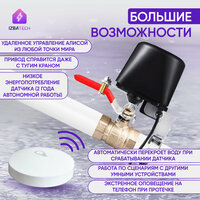 2. Датчик протечки, словно чуткий часовой, мгновенно реагирует на появление воды и подает сигнал приводу.