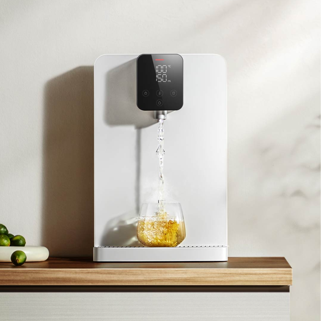 Быстрый нагрев Технология контроля температуры быстрого нагрева толстой пленки и высокая мощность в 2100 Вт гарантируют надежность и эффективность работы термопота. Он справляется с нагреванием за 3 секунды, что позволяет сэкономить значительное количество времени. Технология безопасного кипячения Термопот создает кипение при температуре 100°. Вы всегда можете наслаждаться кипятком в любое время. Одной из ключевых особенностей этого термопота является его способность нагревать воду под микро давлением. Кипяченая вода убивает вредные микроорганизмы, которые могут присутствовать в питьевой воде, делая ее безопасной для употребления. Настройка температуры Для настройки идеальной температуры воды можно использовать предустановленные значения, которых всего четыре. Также есть возможность точной настройки с шагом в 1°C. Например, для вспенивания молока идеальна температура 45°C, а для чая – 85°C. Дозирование воды Вы можете выбрать 150 мл для приготовления кофе, 300 мл для чая или 999 мл для супов. С помощью приложения можно настроить количество воды, увеличивая или уменьшая его по вашему желанию. Чашка на термопоте имеет защиту от проливания. Высокотемпературная стерилизация и контроль трубопровод Благодаря высокотемпературной стерилизации с промывкой, термопот обеспечивает максимальный уровень гигиены и безопасности для питья. Уровень стерилизации достигает до 99,9%. Строгий контроль качества трубопровода, включая использование силиконовой трубки, способствует избежанию вторичного загрязнения и привкуса пластмассы в воде. Равномерное тепло С умной дозировкой и ярким экраном, термопот предоставляет безопасный и удобный способ получения горячей воды. Благодаря инфракрасному датчику, экран автоматически загорается, обеспечивая освещение в ночное время. Его можно установить на столешницу или подвесить на стену. Компактность и дизайн Благодаря своей оптимальной структуре и тонкому корпусу, всего 56 мм в толщину, этот термопот прекрасно вписывается в любую обстановку. Его простой дизайн придает ему эстетичный вид, а белый цвет добавляет ощущение чистоты. Товары в таблице сравнения: Умный проточный термопот Xiaomi Mijia Wall-Mounted Pipeline Water Dispenser (MG3-A)Умный очиститель воды Xiaomi Mijia Water Purifier 1000G White (MR1082) Умный очиститель воды Xiaomi Mijia 1000G Pro (MR1082-A)Умный очиститель воды Xiaomi Mijia Dual Core Water Purifier 1200G White (MR1253) Товары в таблице сравнения: Умный проточный термопот Xiaomi Mijia Wall-Mounted Pipeline Water Dispenser (MG3-A)Термопот проточный с УФ-стерилизацией Xiaomi Viomi Wall-mounted Instant Hot Water Dispenser (MG2-B) Термопот проточный с УФ-стерилизацией Xiaomi Viomi Cloud Second Hot Line Machine Grey (MG2-A)Умный проточный термопот Xiaomi Viomi Pipeline Machine