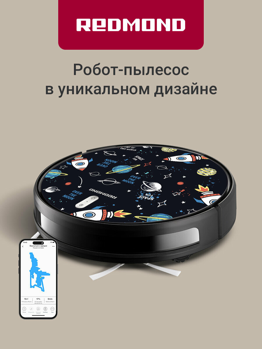 Купить Умный робот-пылесос REDMOND RV-R630S WiFi (космос), сухая и влажная уборка с доставкой по всей России.