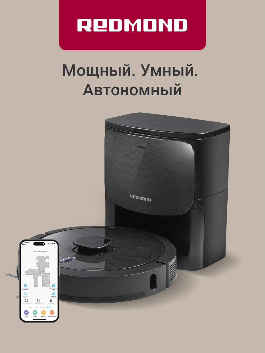 Умный робот-пылесос Redmond VR1323S для сухой и влажной уборкой, 4000 Па, WI-Fi, голосовой помощник, до 250 минут работы, док-станция, черный: сравнение цен, характеристики, фото, актуальное наличие и цены.