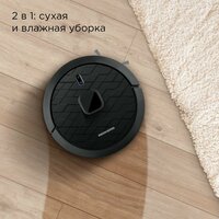 Во время влажной уборки REDMOND VR1323S использует технологию умной подачи воды Smart Moist. Так вода поступает на моп из микрофибры дозированно — ровно столько, чтобы очистить напольное покрытие, но не оставить разводов, капель и мокрых участков.