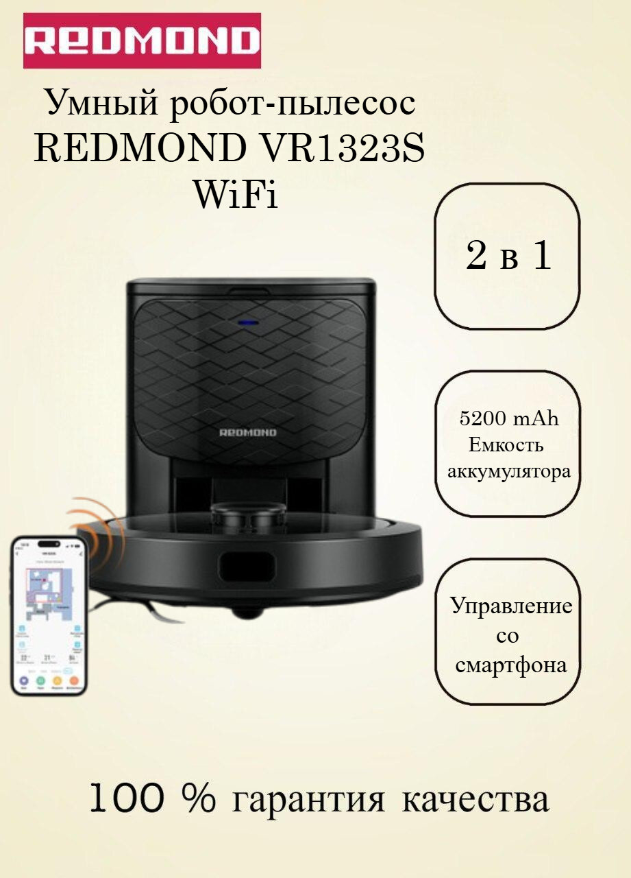 REDMOND VR1323S — это современный робот-пылесос 2 в 1 с лидаром — для сухой и влажной уборки дома. Оснащен турбощеткой, которая эффективно собирает пыль, волосы и шерсть животных. Умеет строить карту помещения и разрабатывает маршрут именно для вашей квартиры. Управляется со смартфона, может проводить уборку по заданному расписанию. Время непрерывной работы — до 250 минут. Очищает контейнер автоматически и заряжается на док-станции.