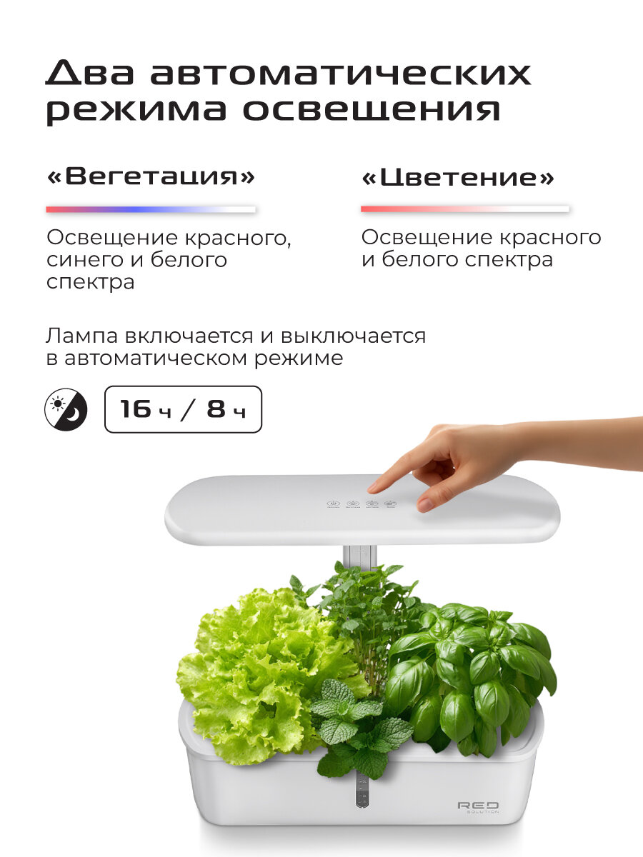Умный сад RED SOLUTION G12, 12 посадочных мест, автоматическая циркуляция воды, резервуар 3,5л.: сравнение цен, характеристики, фото, актуальное наличие и цены.