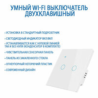 Купить Умный сенсорный двухклавишный Wi-Fi выключатель с Алисой, белый с доставкой по всей России.