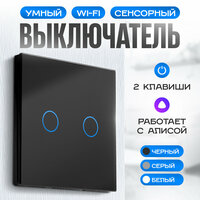 Купить Умный выключатель с Алисой двухклавишный, сенсорный Wi-Fi переключатель света, черный с доставкой по всей России.
