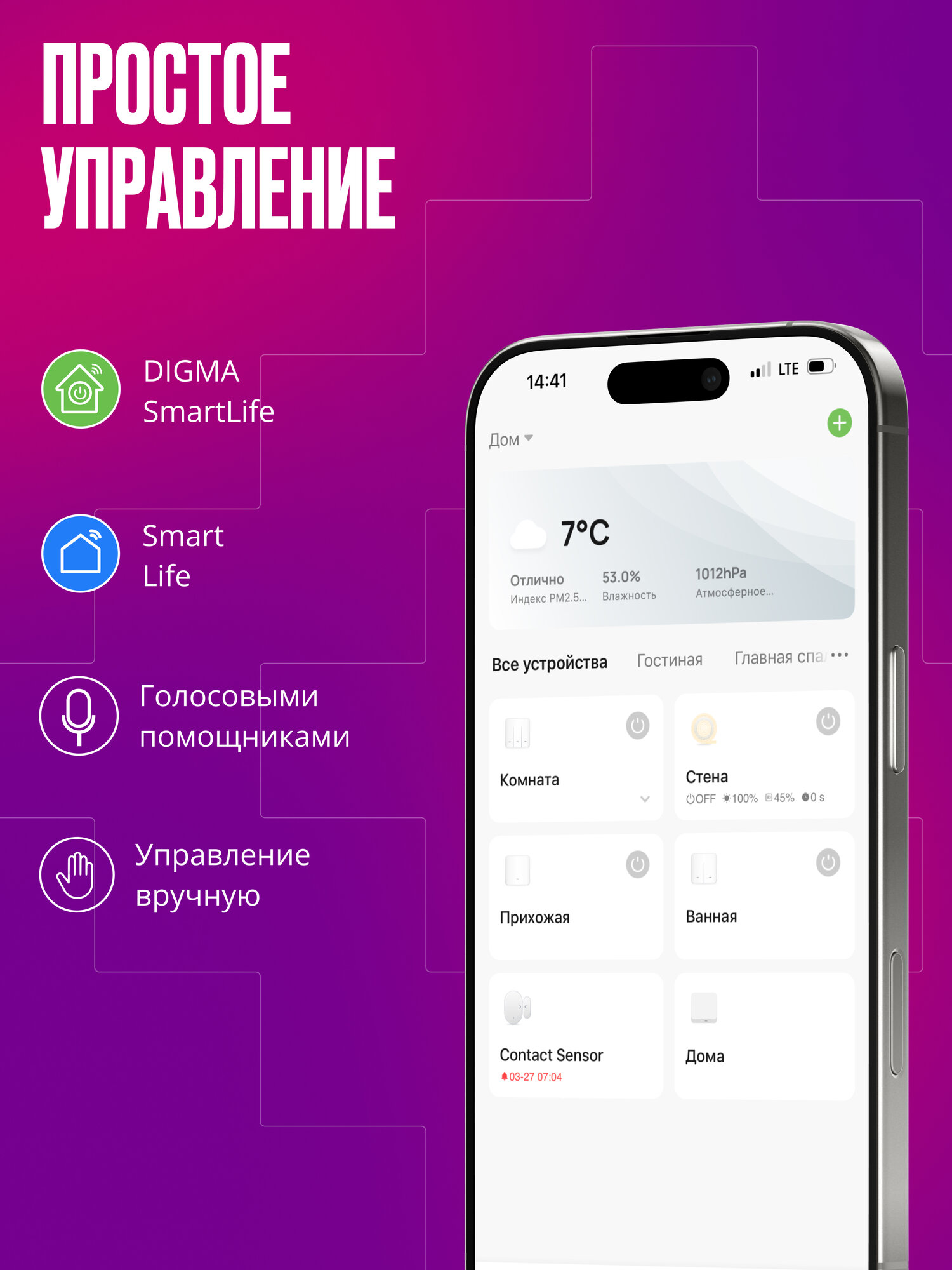 | Экосистема | DIGMA SmartLife, Tuya Smart, Умный дом Яндекса |