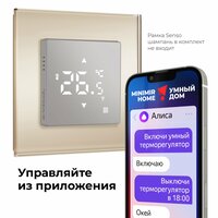 Управление умным терморегулятором осуществляется при помощи смартфона или голосовых помощников Алисы и Маруси. В бесплатном приложении Minimir Home легко программировать сценарии работы устройства.