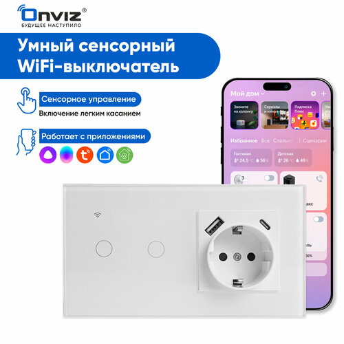Умный сенсорный Wi-Fi выключатель с Алисой (белый) 2хклавишный с розеткой USB Type-C, универсальный без нуля и с нулем: сравнение цен, характеристики, фото, актуальное наличие и цены.