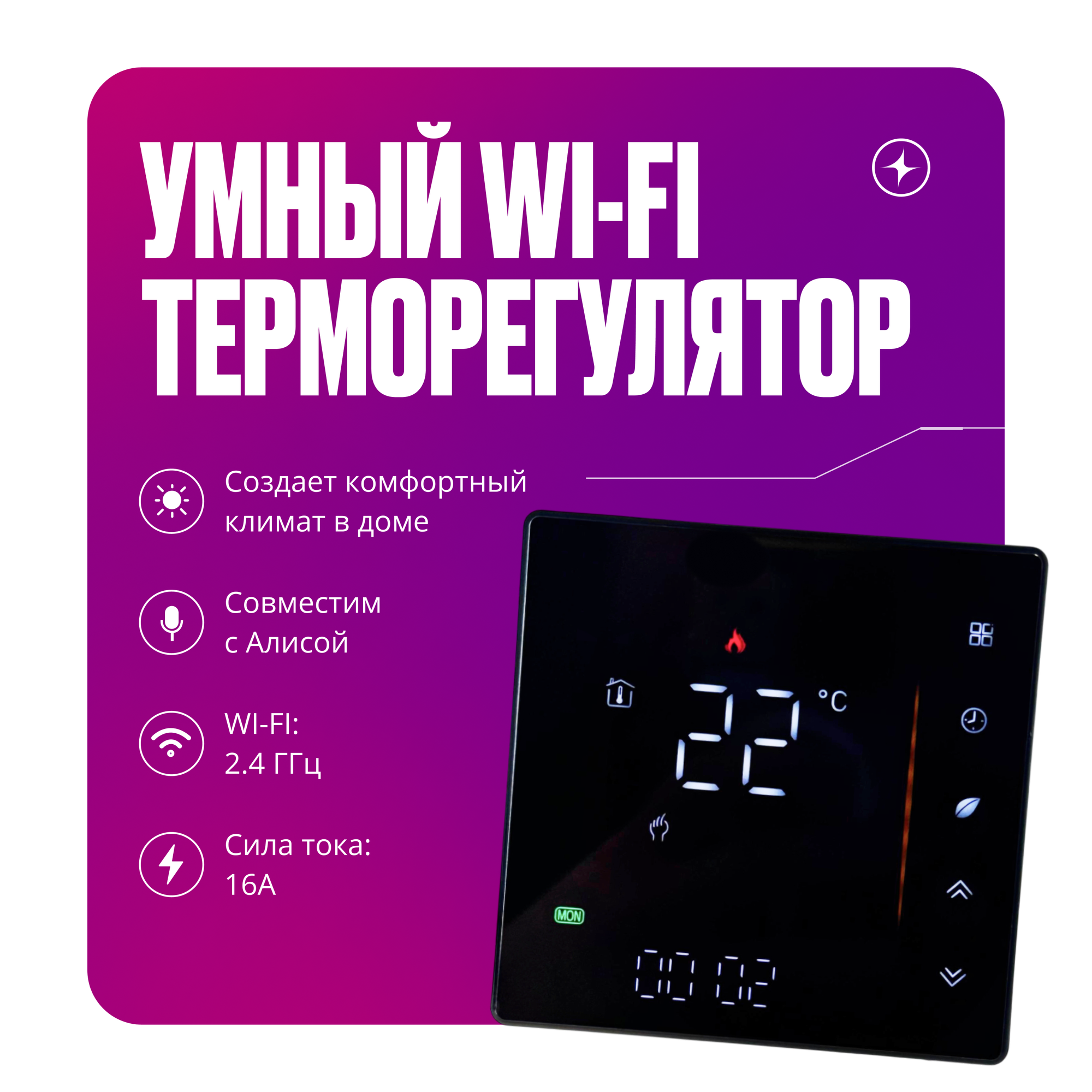 Умный терморегулятор для тёплого пола с Wi-Fi, сенсорный термостат на 16А с ЖК экраном, черный: сравнение цен, характеристики, фото, актуальное наличие и цены.