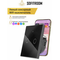Купить Умный сенсорный WiFi выключатель с Алисой 2 клавиши, Tuya, черный, универсальный без нуля и с нулем с доставкой по всей России.