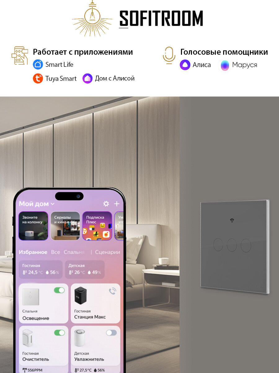 Умный сенсорный WiFi выключатель с Алисой 3 клавиши, Tuya, черный, универсальный без нуля и с нулем: сравнение цен, характеристики, фото, актуальное наличие и цены.