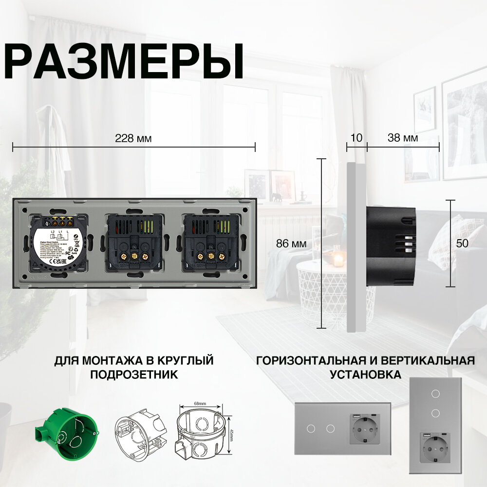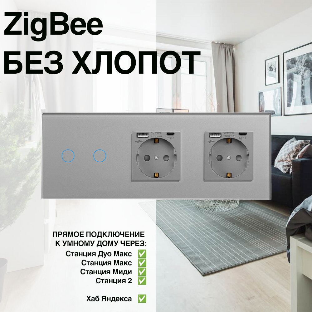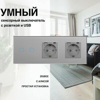 Умный сенсорный ZigBee выключатель с розеткой, рамка из стекла, 3 поста (2кл.+2роз.): сравнение цен, характеристики, фото, актуальное наличие и цены.