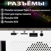 Встроенная колонка Bluetooth позволяет подключать к устройству смартфон или другое устройство с Bluetooth и прослушивать музыку или аудиокниги. Также устройство оснащено радио FM