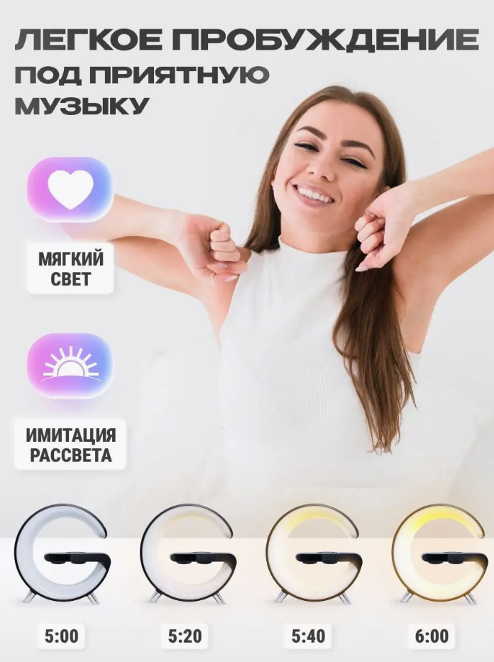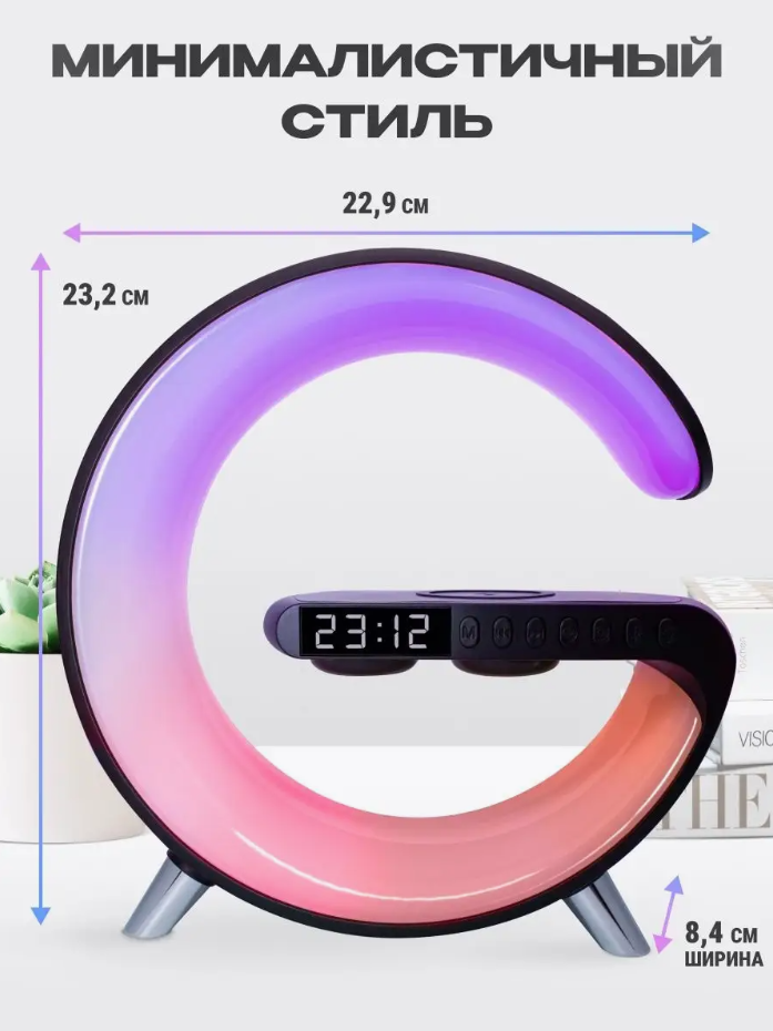 Умный светильник RGB Ночник с беспроводной зарядкой 15W, Часами, Будильником и Bluetooth колонкой, Черный: сравнение цен, характеристики, фото, актуальное наличие и цены.