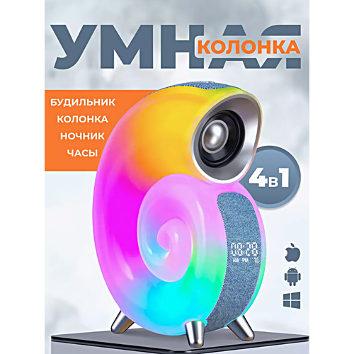 Умная лампа 4 в 1 это - ночник, Bluetooth колонка, часы, будильник в одном устройстве. Этот универсальный прибор объединяет несколько функций для экономии места на столе или комоде. Ночник-светильник с RGB подсветкой с выбором цветов помогает создать правильную атмосферу в комнате. Вы можете выбрать из более чем 16 млн цветов и настроить яркость по своему усмотрению. Кроме того, лампочка оснащена функцией изменения цветовой схемы и температуры света, что позволяет выбрать наиболее подходящий вариант. Блютуз колонка - позволяет слушать любимые композиции или сказки со смартфона или планшета. В светильнике есть встроенные динамики, которые выводят объемный звук на 360 градусов. Подключение производится по Bluetooth. Свет может изменяться в ритме музыки. Настольная колонка имеет мощный звук и чистые высокие и низкие частоты, что позволяет наслаждаться качественным звуком. Управление колонкой настолько простое, что с ним справится даже ребенок. Часы изготовлены из качественных материалов, что гарантирует прочность и надежность. Компактный размер и современный дизайн в виде раковины делают эту ночную лампу подходящей для любого интерьера. Светильник работает от адаптера 18-30 В. Помогает уснуть. Вы можете включать «белый шум», который будет хорошо влиять на качество сна. А будильник с имитацией рассвета и 4 различными мелодиями разбудит вас в прекрасном настроении. Также беспроводной портативной колонкой можно управлять с телефона. Для этого нужно скачать приложение Music light. Основные характеристики: Кнопочное управление; Регулируемая яркость; мощность встроенного динамика: 5 Вт; аккумулятор 2000 мАч; Вес: 530 г. Прикольные подарочки женские на 8 марта женщине подруге маме бабушке дочке сестре внучке бабуле для дочери, для жены, сестренке, мамочке, свекрови, теще, лучшей подружке. Подарки мужские на 23 февраля мужчине папе дедушке другу сыну брату внуку, геймеру, школьнику, племяннику, пацану. Красивый и оригинальный сувенир на 14 февраля ко дню святого Валентина или всех влюбленных девушке, жене, супруге, парню, мужу, отцу. Бесшумные домашние часы детские мальчику и девочке, подростку, детям. Креативная идея сюрприза маленьким фанатам русалочки Ариэль на 8марта, день рождения. Необычные, декоративные, стильные, комнатные часы сделанные под улитку можно подарить на юбилей или свадьбу, новоселье, родителям, коллеге и учителю, др взрослым и для подростков или друзей. Разместите на прикроватную тумбу или полку в свою спальню уникальные часы с динамиками и они послужат интерьерным декором и создадут уют! Такой интересный подарочный набор нужный и полезный аксессуар в дом, для дачи или квартиры привнесут эстетику и укажут время на экране. Электроника для дома станет украшением кухни, прихожей, семейной гостиной или кабинета. Купите большую круглую лампу с часами любимому человеку на годовщину отношений. В наборе: часы, коробка, провод для зарядки, инструкция. Памятный крутой светящийся светодиодный гаджет на день рождения 2, 3 - 6, 7 - 9, 10, 11, 12, 13, 18 лет, который можно брать на улицу.
