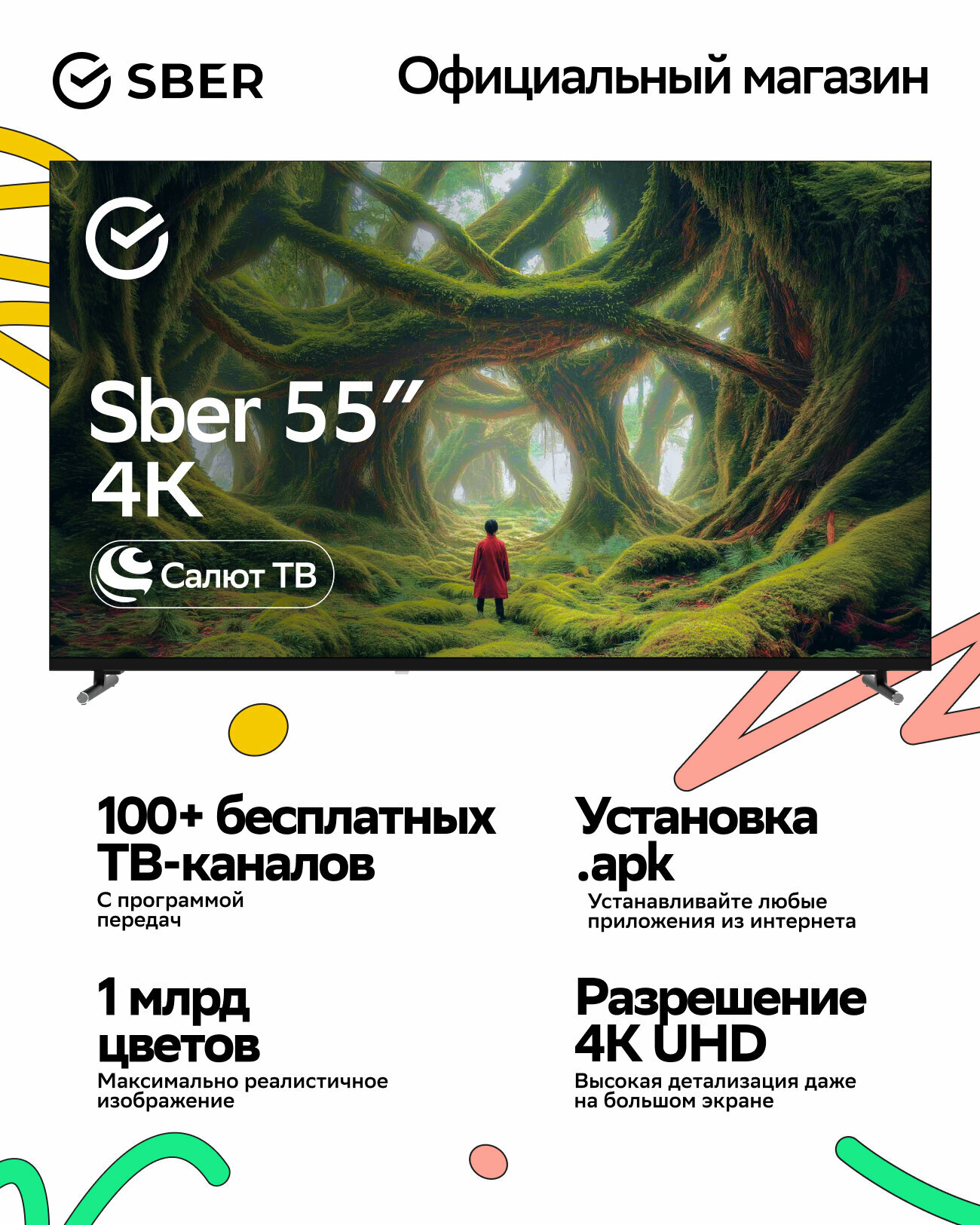 Умный телевизор Sber SDX-55U4139, 55"(139 см), UHD 4K RAM 2GB
