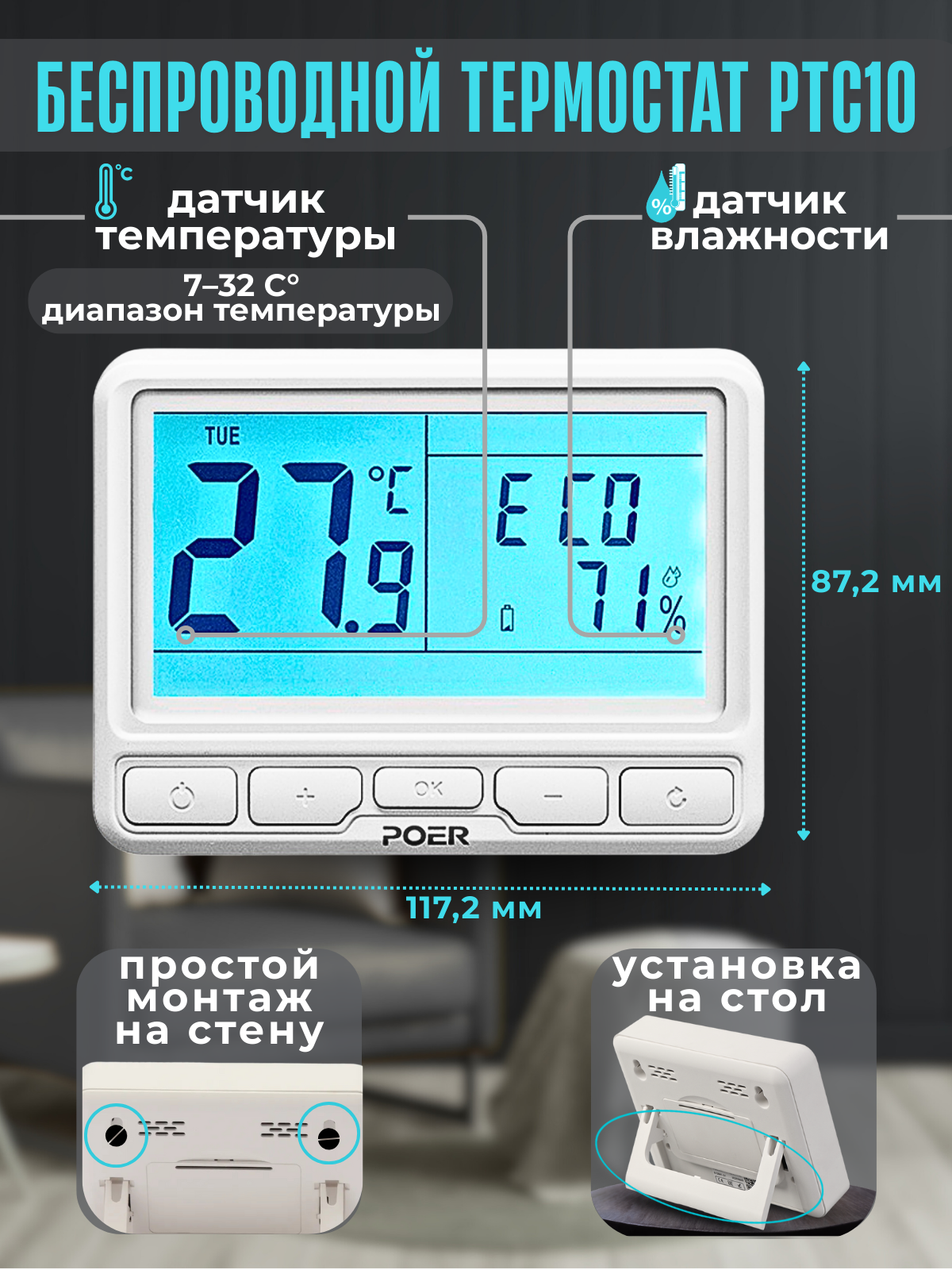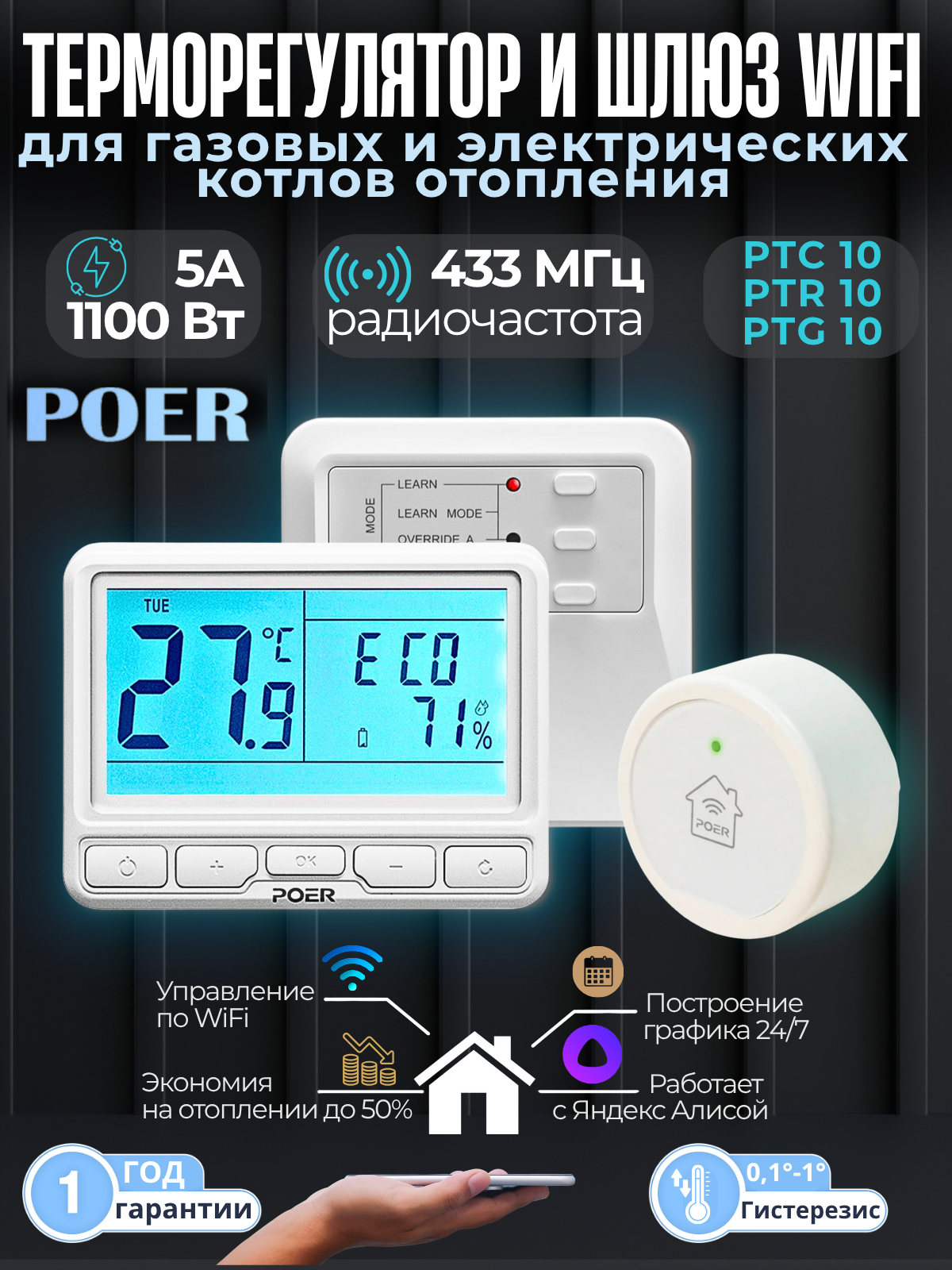 Умный терморегулятор отопления беспроводной, термостат POER PTC10/PTR10 + шлюз PTG10, WiFi частота 433МГц: сравнение цен, характеристики, фото, актуальное наличие и цены.