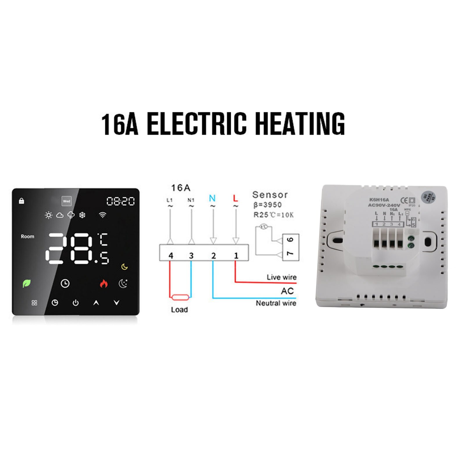 Умный термостат 16A, цветной сенсорный ЖК-дисплей, программируемый термостат с электрическим подогревом для ПК, для дома, отеля, офиса, переменный ток от 90 до 240 В, Wi-Fi: сравнение цен, характеристики, фото, актуальное наличие и цены.