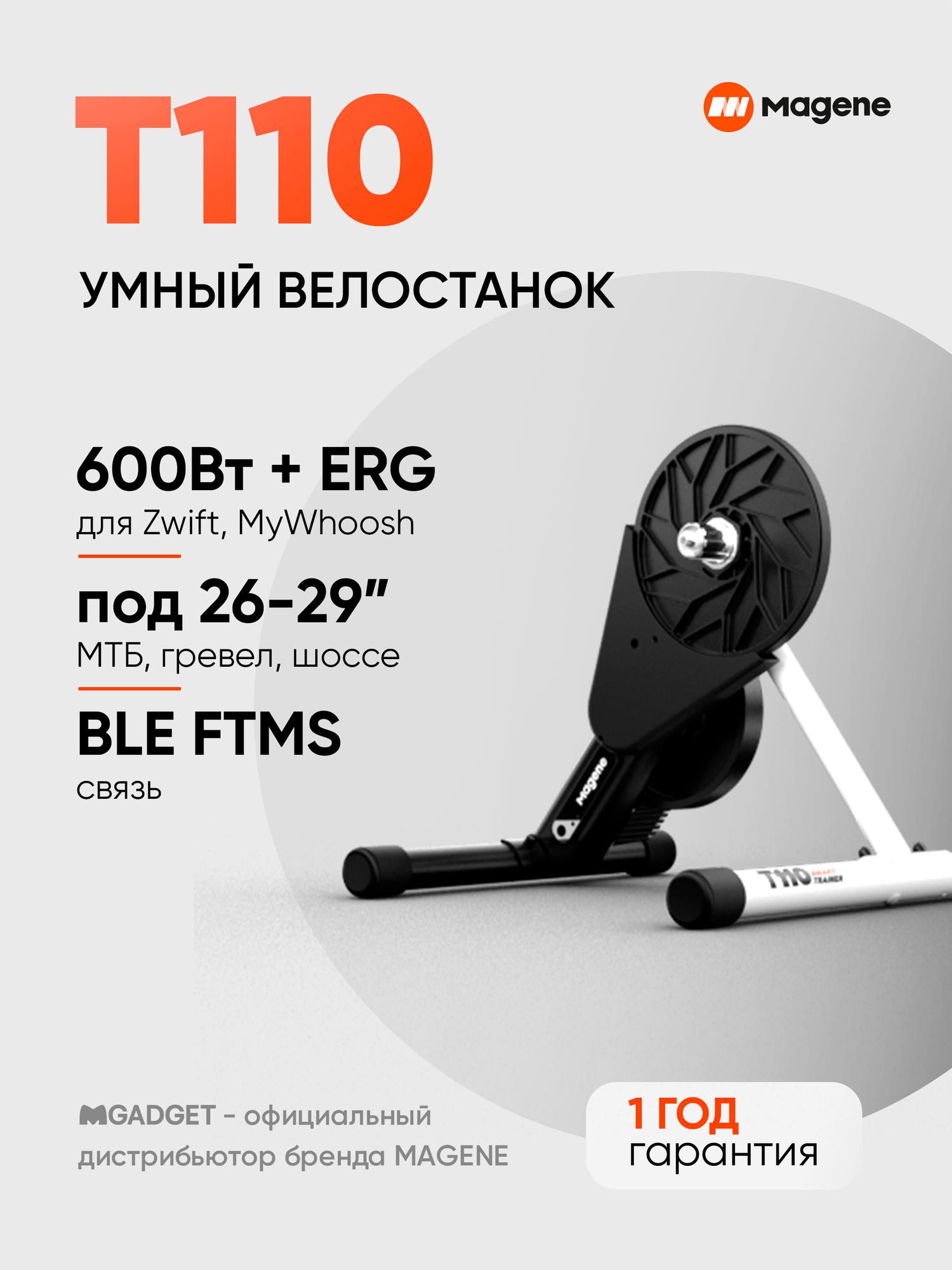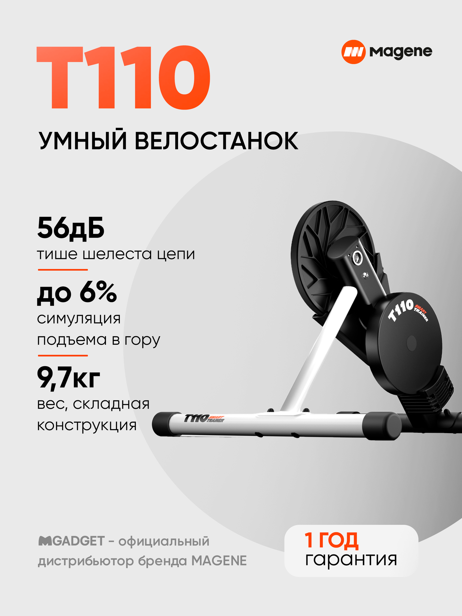В станке T110 используется электромагнитная система передачи энергии, что сводит потери энергии к минимуму. Он также поддерживает калибровку, а для простого управления требуется всего одно нажатие на кнопку в приложении Magene Utility APP. Станок поддерживает максимальную мощность 600 Вт. Для большинства велосипедистов начального уровня, даже на спринтерском этапе, это будет более, чем достаточно. T110 также поддерживает данные о мощности и скорости, удовлетворяя ваши потребности в тренировках и помогая вам достичь поставленных целей в велоспорте.