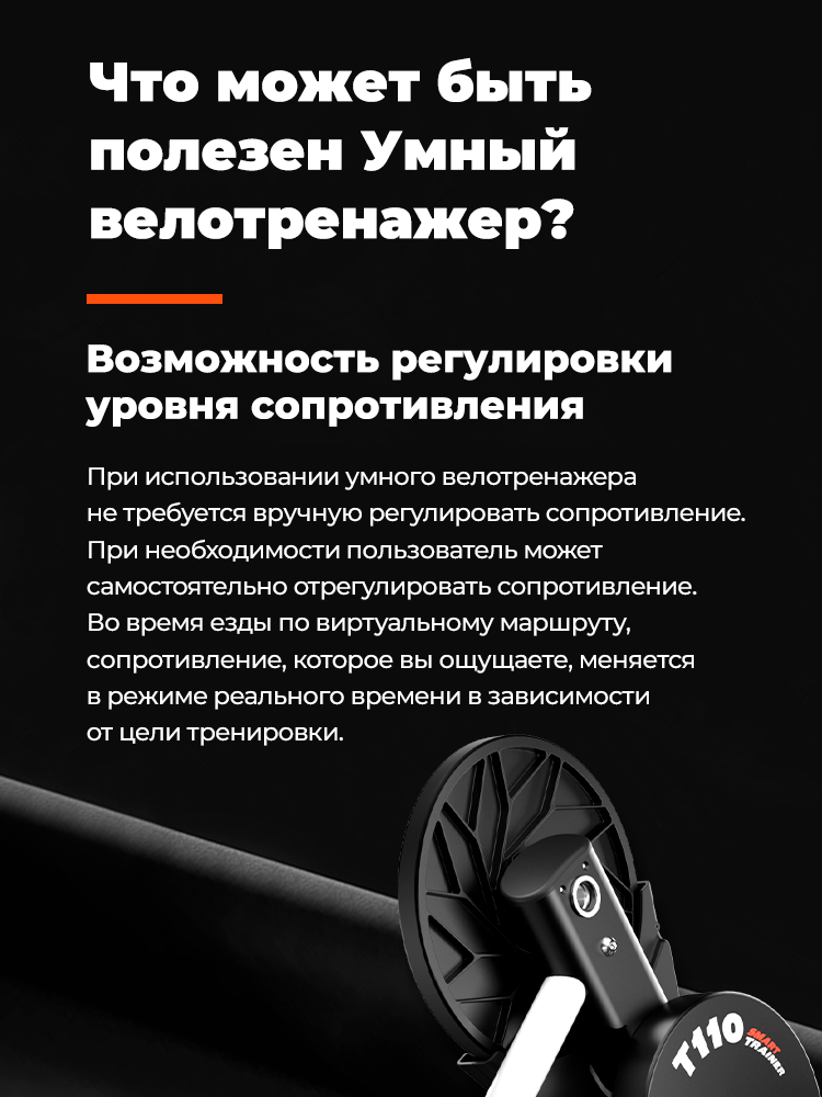 Умный станок T110 обеспечивает максимальную эффективность тренировок в помещении и реалистичное моделирование езды на велосипеде. T110 - это регулируемый уровень сопротивления, интерактивные развлечения и данные о тренировках в режиме реального времени. Бесшумная и легкая конструкция позволяет погрузиться в процесс тренировок в помещении.