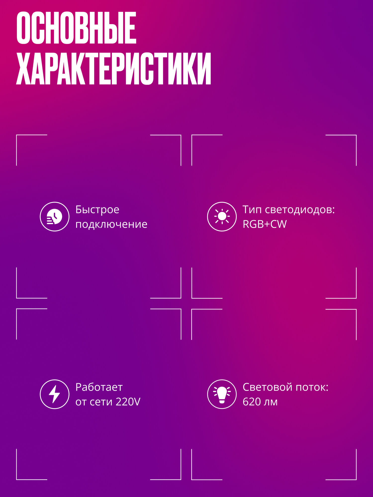 | Управление | голосовое управление, диммер, управление со смартфона |