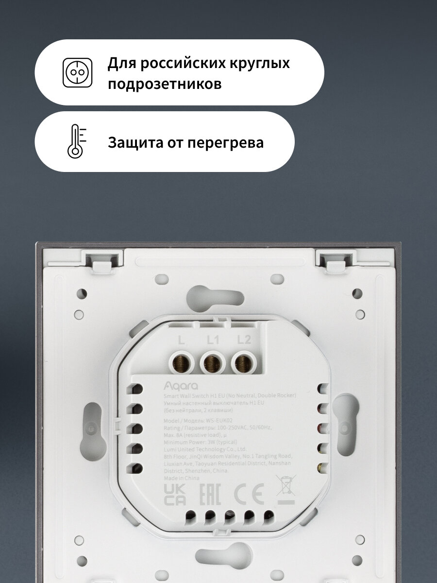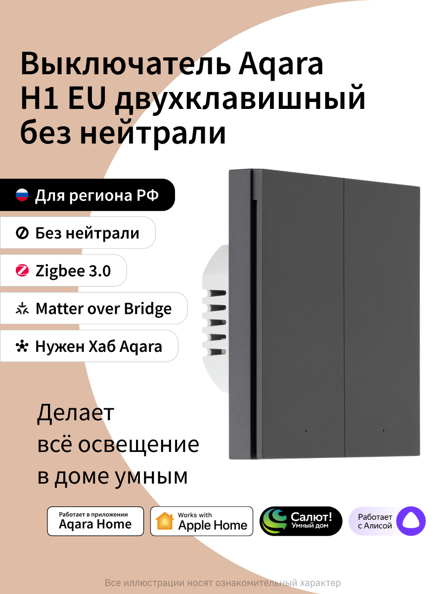 - Умный выключатель двухклавишный без нейтрали Aqara H1.