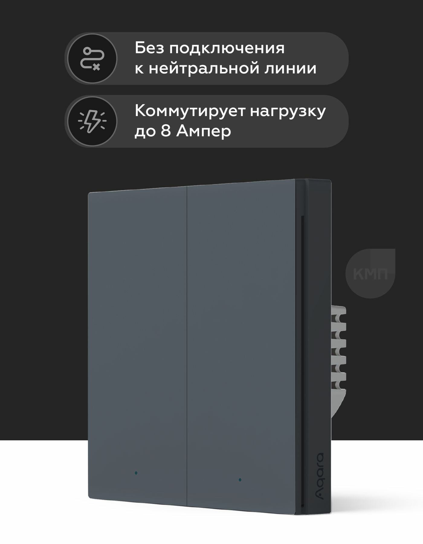 Умный выключатель двухклавишный без нейтрали Aqara H1 WS-EUK02, умный дом, графитовый: сравнение цен, характеристики, фото, актуальное наличие и цены.