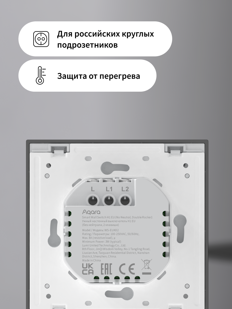 - Умный выключатель двухклавишный без нейтрали Aqara H1.