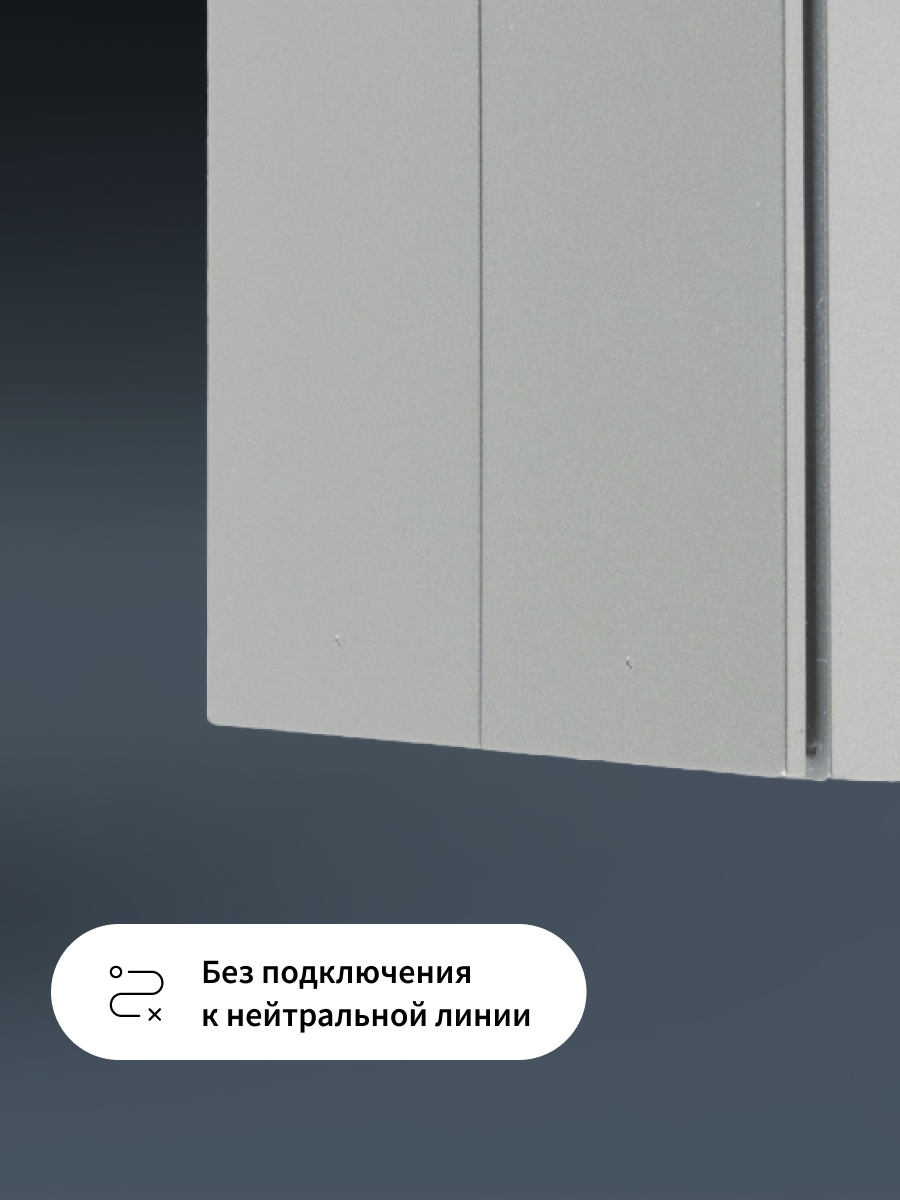 Версия умного выключателя «No neutral» устанавливается в разрыв фазы без использования нейтрального провода. Нет необходимости вносить изменения в стандартную проводку.
