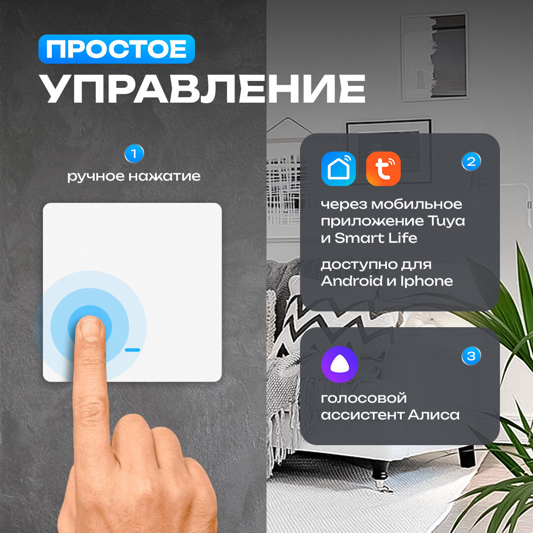 Умный выключатель Easy Tech, кнопочный выключатель, одноклавишный, Wi-Fi с индикатором подсветки, белый: сравнение цен, характеристики, фото, актуальное наличие и цены.