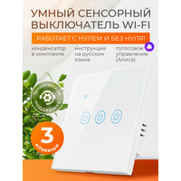 Умный выключатель сенсорный с Алисой и Wi-Fi трехклавишный белый / FoxHome