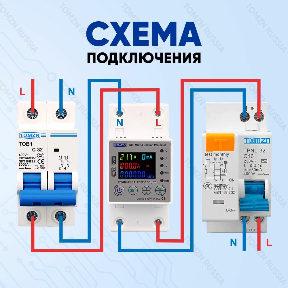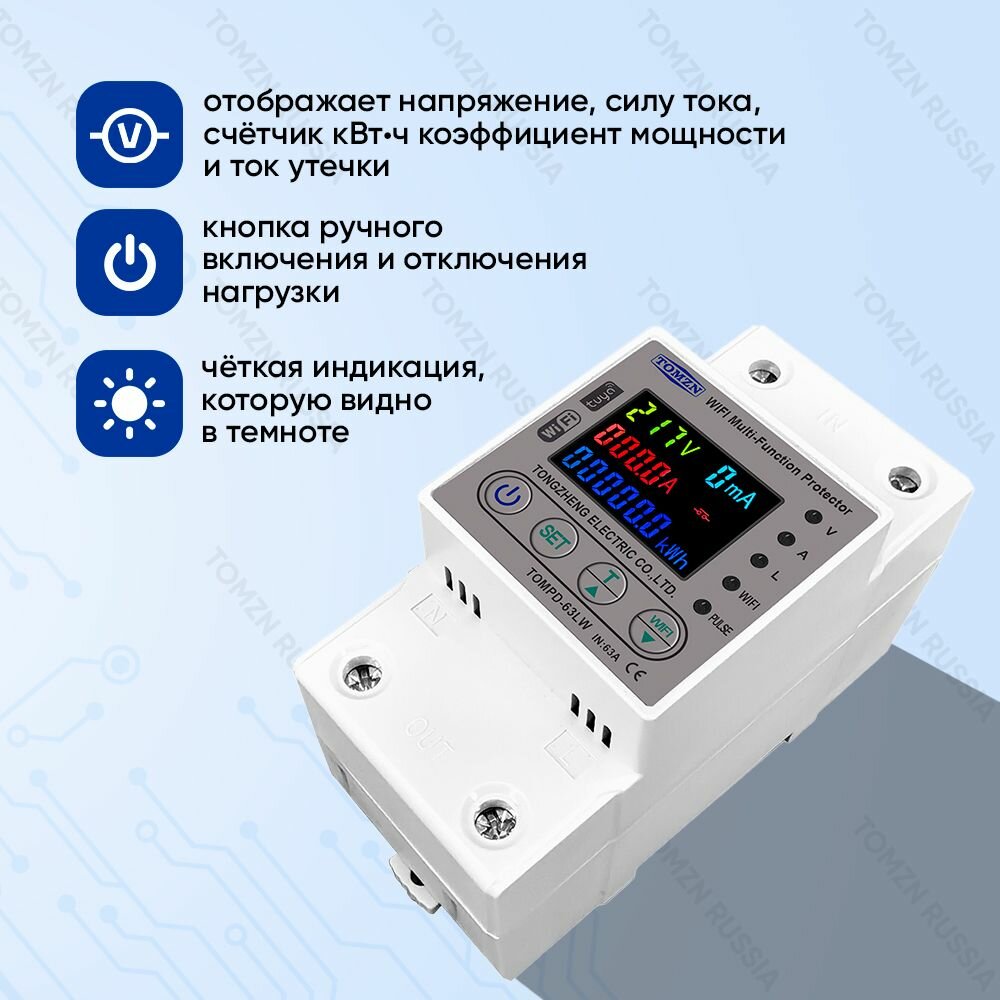 Умный WiFi-выключатель TOMPD-63LW TOMZN, 2 полюса, DIN-рейка, защита IP20, управление через Wi-Fi: сравнение цен, характеристики, фото, актуальное наличие и цены.