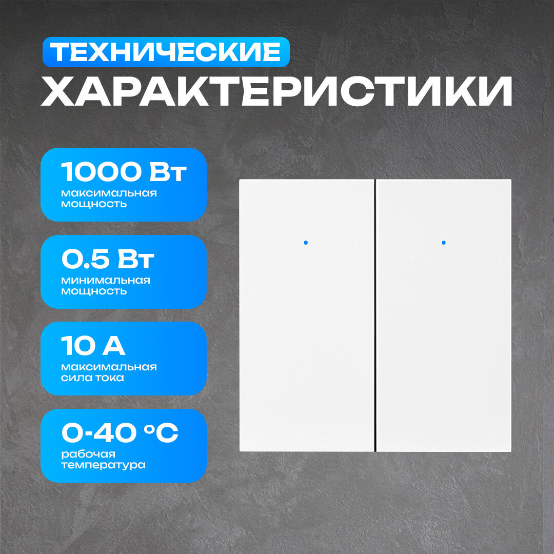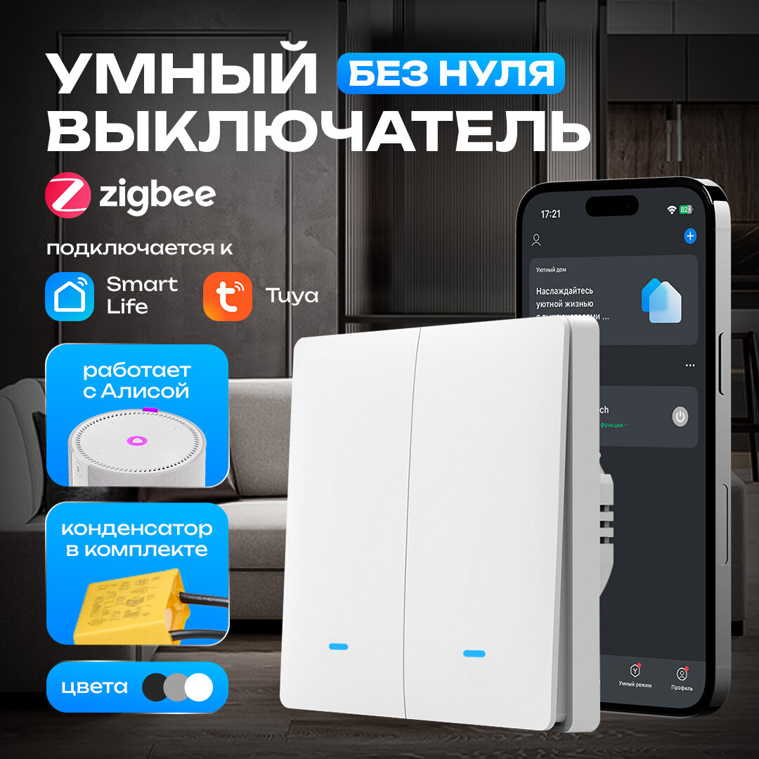 Умный выключатель Zigbee с Алисой, двухклавишный кликер, Wi-Fi переключатель света с индикатором подсветки, белый: сравнение цен, характеристики, фото, актуальное наличие и цены.