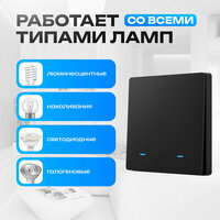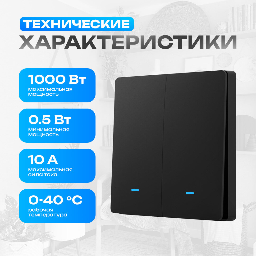Умный выключатель Zigbee с Алисой, двухклавишный кликер, Wi-Fi переключатель света с индикатором подсветки, черный: сравнение цен, характеристики, фото, актуальное наличие и цены.