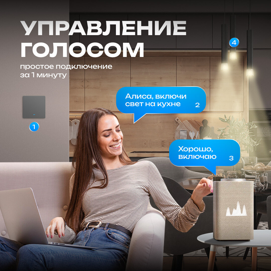 Купить Умный выключатель Zigbee кнопочный одноклавишный серый с индикатором подсветки с доставкой по всей России.