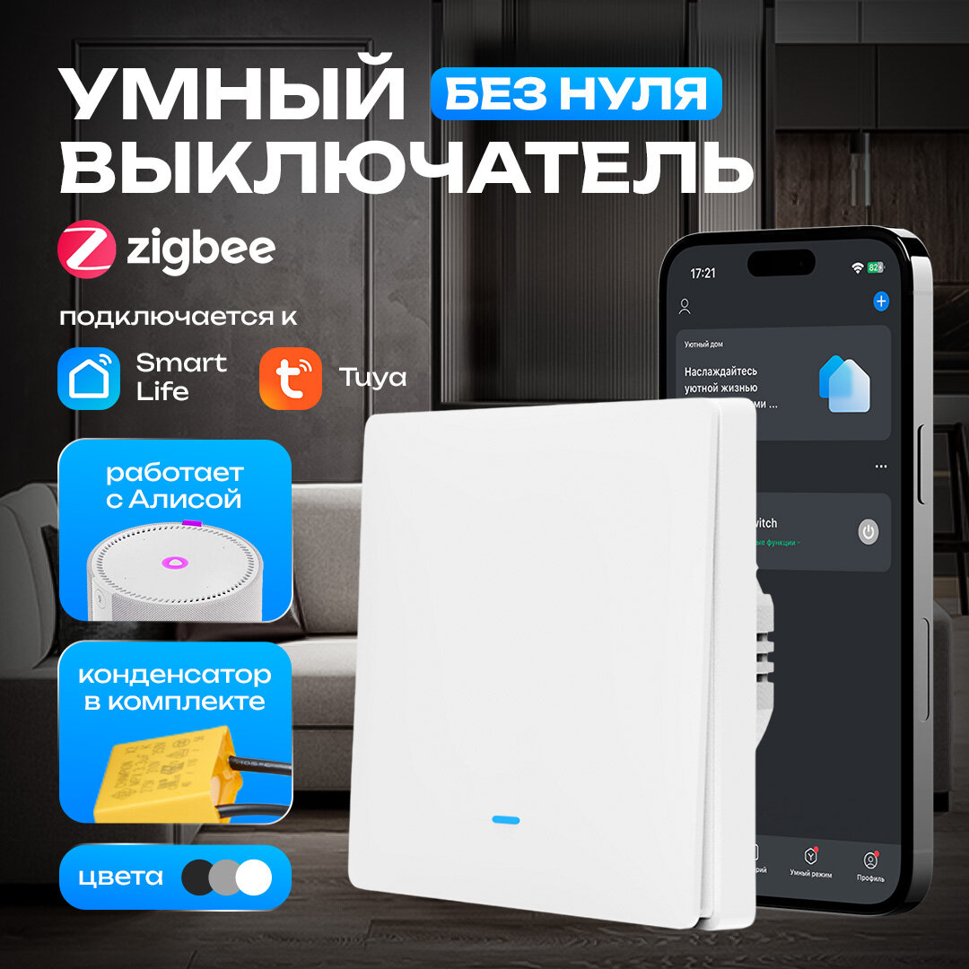 Умный выключатель Zigbee с Алисой, одноклавишный кликер, Wi-Fi переключатель света с индикатором подсветки, белый: сравнение цен, характеристики, фото, актуальное наличие и цены.