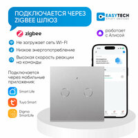 Умный выключатель Zigbee с Алисой двухклавишный без нуля на 1000 W Tuya сенсорный выключатель, без конденсатора. серый: сравнение цен, характеристики, фото, актуальное наличие и цены.