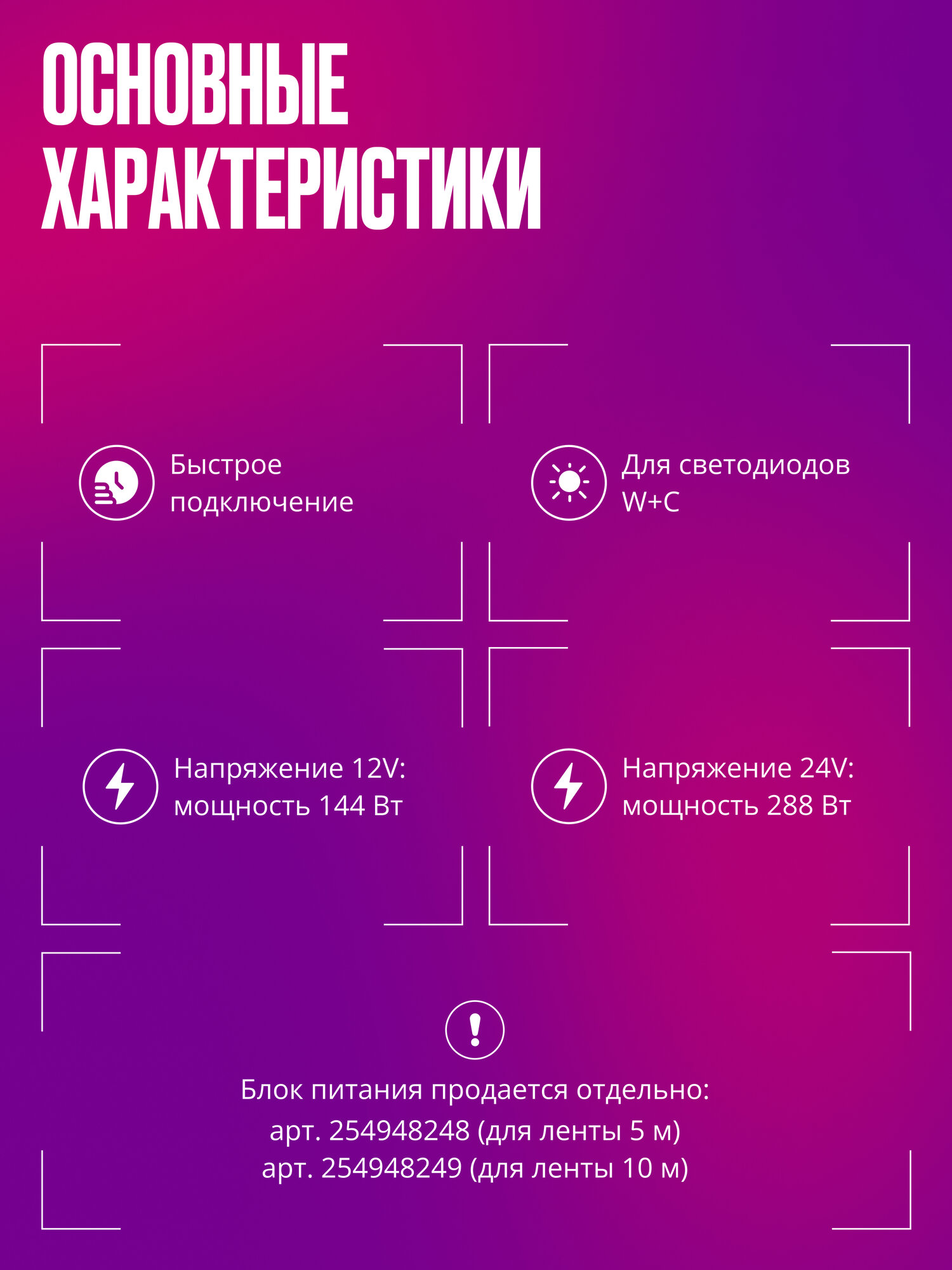 Умный Wi-Fi диммер контроллер для двухцветной светодиодной LED ленты, 12-24 В, 288 ВТ + RF пульт управления: сравнение цен, характеристики, фото, актуальное наличие и цены.