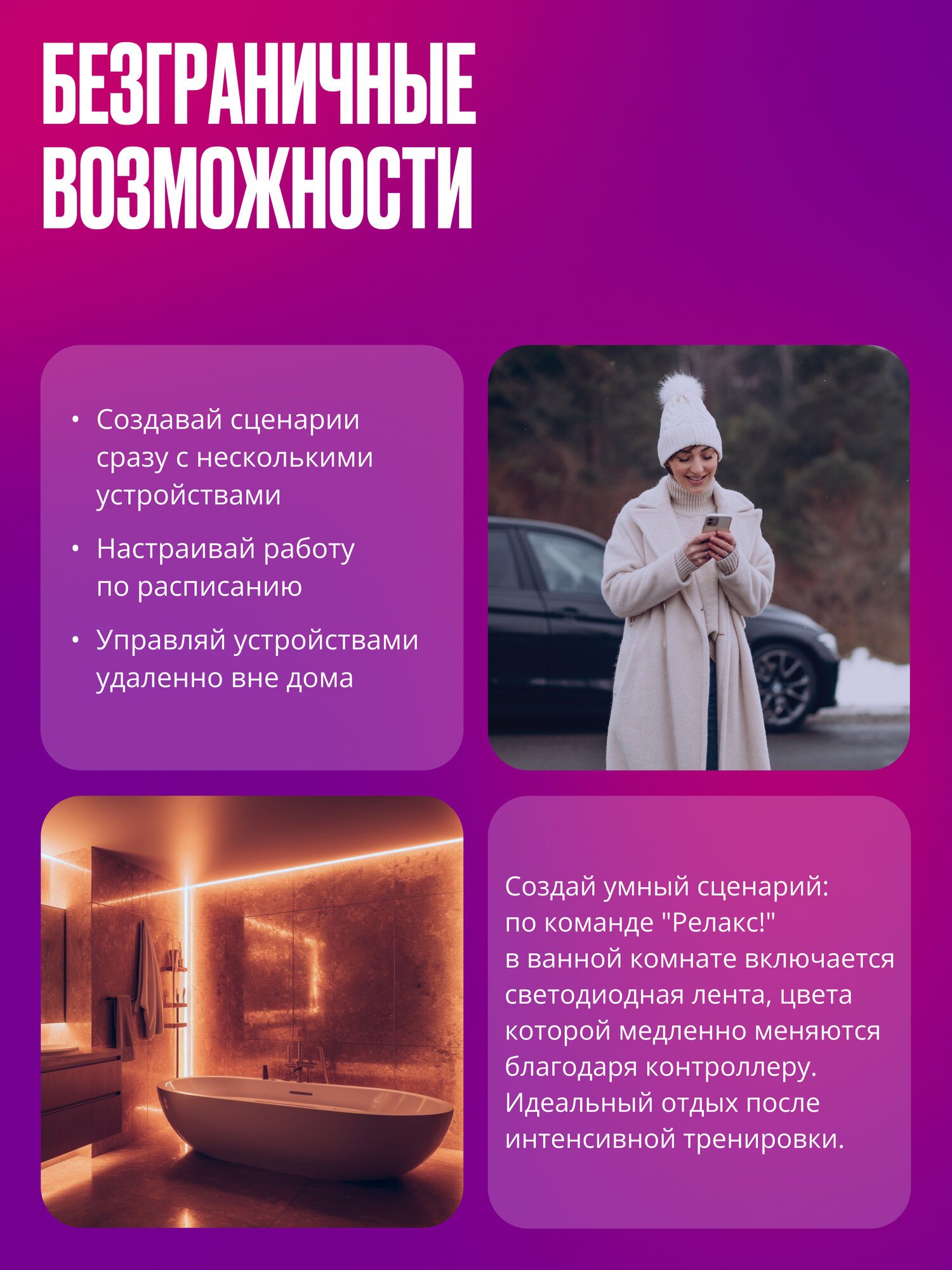 | Подробная комплектация | Умный контроллер с WIFI приёмником, RF пульт, инструкция. |