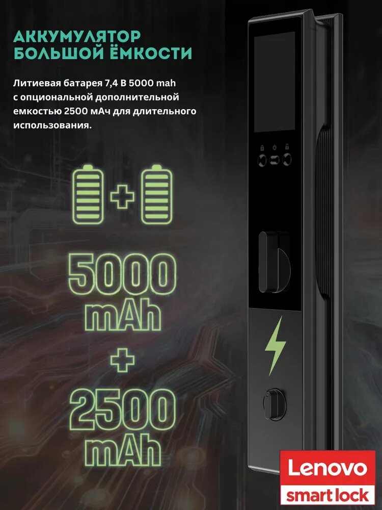 Интеллектуальный дверной замок LENOVO Smart Lock А6F BLACK сочетает в себе передовые технологии и элегантный дизайн.