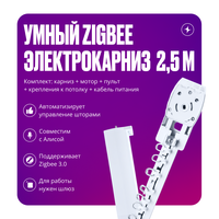 Купить Электрокарниз для штор 2,5 метра, умные шторы Zigbee+RF, автоматический умный привод с пультом с доставкой по всей России.