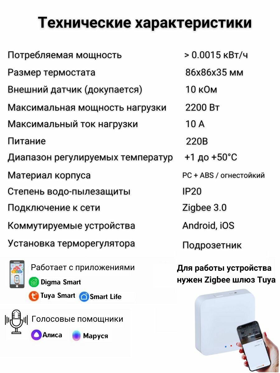 Терморегулятор с Wi-Fi ERAFLYM EF2R (Алиса, Google Home, Маруся) протокол Tuya, работает без шлюза, Smart Plug)