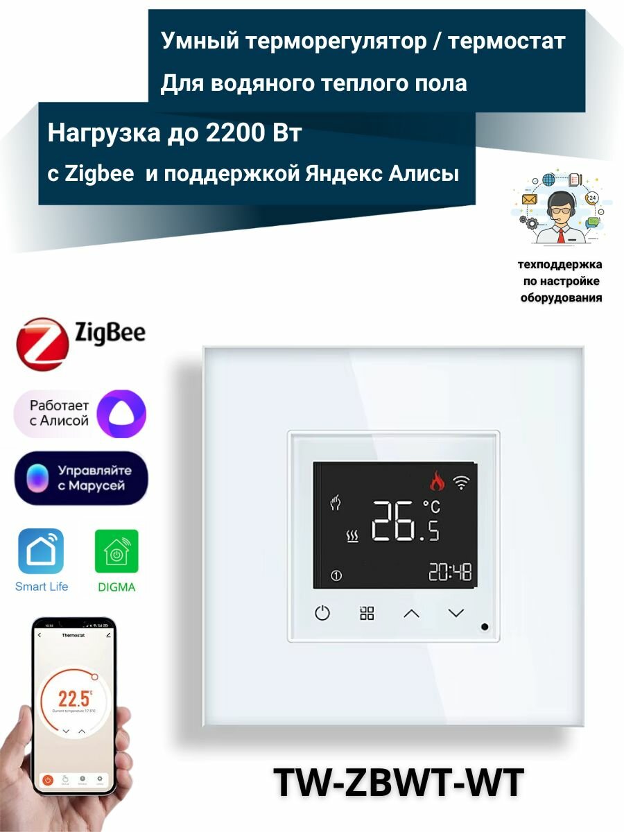 Умный Zigbee терморегулятор встраиваемый для водяного теплого пола (белый): сравнение цен, характеристики, фото, актуальное наличие и цены.
