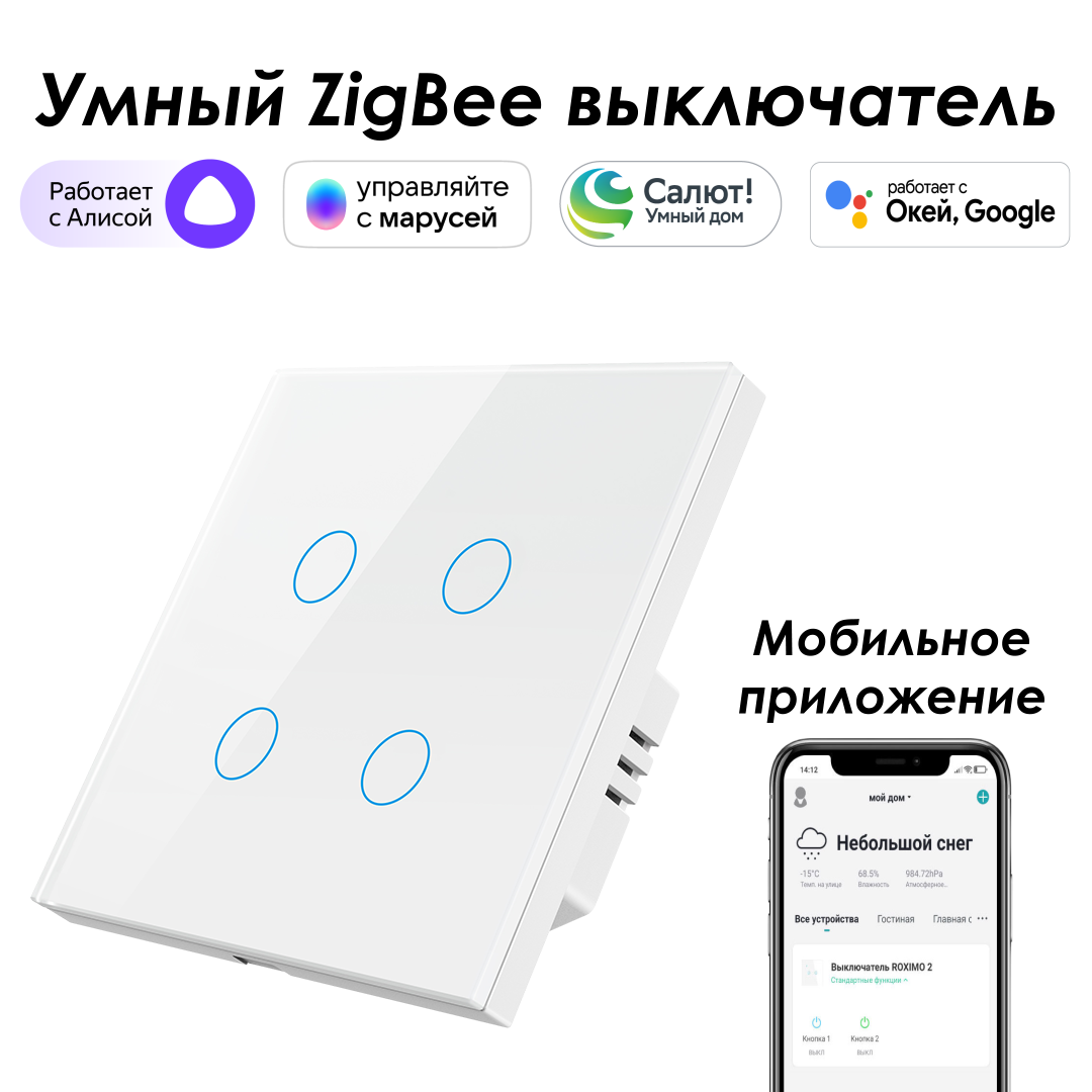 Купить Умный Zigbee выключатель ROXIMO сенсорный, четырехкнопочный, белый с доставкой по всей России.