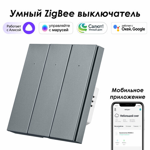 Выключатель умный ROXIMO SZBTN01‑3S, Zigbee, 3‑кнопочный, серый: сравнение цен, характеристики, фото, актуальное наличие и цены.