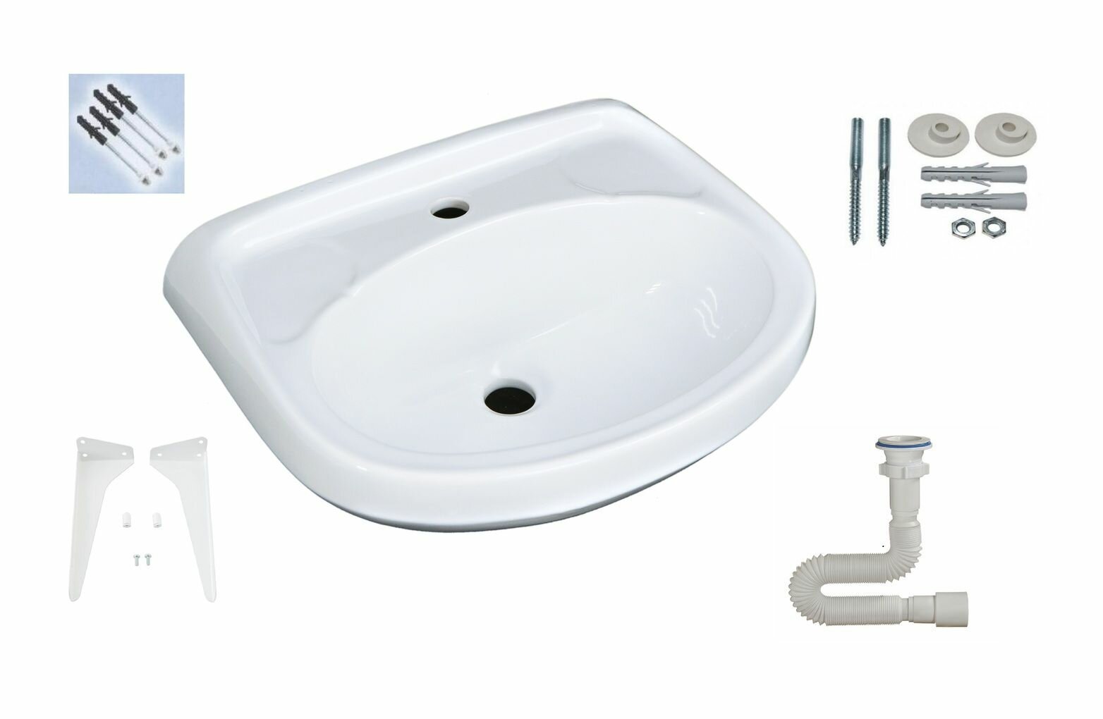 Купить Умывальник Браво с отверстием Лобненский стройфарфор с гофрированым сифоном и кронштейнами с доставкой по всей России.