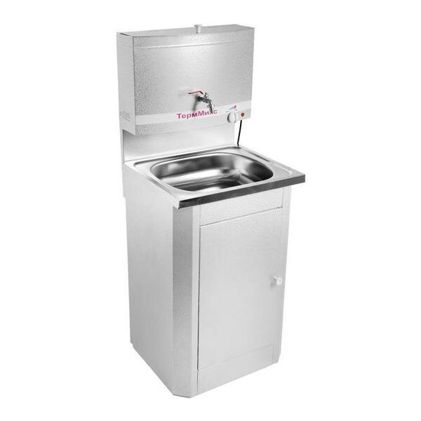 Умывальник "ТермМикс", с ЭВН, нержавеющая мойка, 1250 Вт, 17 л, белое серебро. Умывальник "ТермМикс" предназначен для использования в местах без центрального водоснабжения. Мойка выполнена из нержавеющей стали. Объём бака 17 литров. ОсобенностиМощность водонагревателя 1,25 кВт. Автоматическое отключение при достижении 60 °С. Бак выполнен из стали.(6535553)