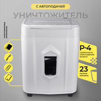 Уничтожитель бумаги гелеос АП23-4 с функцией автоподачи. Позволяет уничтожать документы стопками, вместо того чтобы загружать их по несколько листов. Автоподача до 131 листа 80г/м2. Время уничтожения - 3-4 мин. Скорость уничтожения в режиме автоподачи многократно превышает базовые характеристики аналогов при обычном режиме уничтожения. Автоподача - легкое и удобное уничтожение листов, экономит время и трудозатраты. Приемная корзина обеспечит удобство при наполнении отработанного материала, а подробная индикация поможет разобраться в режимах работы. Защитите ваши персональные документы и конфиденциальные данные о компании с помощью этого шредера с уровнем секретности P4 и перекрестным типом резки, который также добавит немного стиля в ваш дом или офис! Для удобства отслеживания наполняемости корзины отходами в ней предусмотрено прозрачное смотровое окошко. Уничтожитель можно легко перемещать по офису, поскольку он оснащен колесами. Отлично подходит для интенсивного персонального использования или коллективного использования в малом офисе. 2 режима подачи: автоподача и ручной. Рабочий цикл при обычном режиме 20 работа/ 45 мин перерыв, при автоподаче - 60 работа/45 мин перерыв. Корзина выдвижная. Вместимость 390 листов. Размер резки 3,9х12 мм. Данный аппарат снабжен надежными функциями реверса, автореверса, автостопом, автостартом. Есть индикатор возникновения затора, индикатор наполнения корзины, автостоп при заполнении корзины, индикатор открытой дверцы, индикатор перегрева. Ваша работа будет легкой и спокойной. Мощность 290Вт. Уровень шума 55/58 дБ. В каждом доме, небольшом или крупном офисе со временем скапливается много бумажных документов, требующих утилизации. Просто выбросить их опасно, в этом случае содержащаяся в них информация может стать доступной злоумышленникам. Информация о банковских счетах, пароли, номера телефонов, ксерокопии документов, паспортные данные, отчеты, договора, чеки. Да и каждый, кто работает с бумагами, рано или поздно сталкивается с одной и той же проблемой: куда деть документы, которые больше не нужны? Казалось бы, все просто – нужно собрать бумаги в кучу и выкинуть, но что с бумагой, которую нельзя просто выкинуть? Уничтожители бумаг набирают все большую популярность не только в офисах, но и для домашнего использования. Шредер (уничтожитель бумаги) – это специальное устройство для измельчения бумаги путем превращения их в полоски или кусочки разных фрагментов. Он активно используется не только в офисах, но и дома. Чаще всего с помощью шредера уничтожается конфиденциальная информация, размещенная на разных носителях. Уничтожение документов производится путем их механического измельчения. Уничтожитель бумаги поможет вам навести порядок на рабочем месте и избежать утечки информации, позволит быстро и безопасно избавится от уже ненужных документов. Имея под рукой шредер для бумаги, вы можете уничтожать документ сразу после того, как он потерял актуальность. Оргтехника помогает нам не только автоматизировать расчеты или печатать документы. Зачастую документов накапливается так много, что их необходимо утилизировать. Для этого и существует шредер для бумаги. Избавиться от кипы ненужных бумаг – значит, сохранить порядок в офисе или дома, а переработанную макулатуру проще поместить в урну, ведь она 