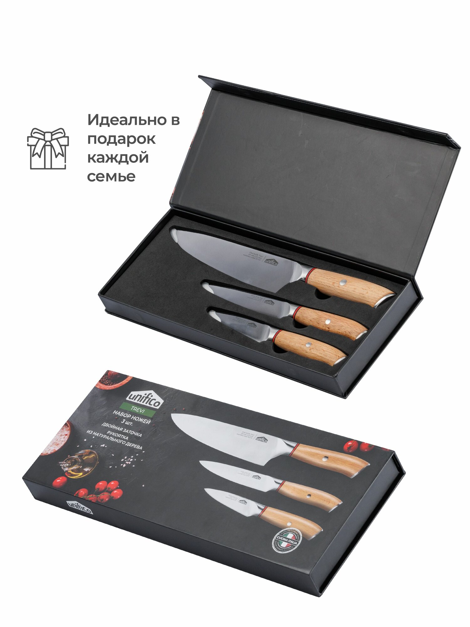 Подарочный набор кухонных ножей с рукояткой из дерева Unifico — стильный и функциональный помощник для создания кулинарных шедевров. Надежность, комфорт и современный дизайн делают его идеальным выбором для вдохновения каждого любителя и профессионального повара готовки.